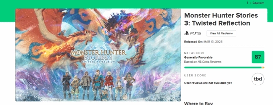 在媒體評價層面,這款游戲的表現(xiàn)依舊出色。此前IGN曾為《怪物獵人物語3》給出9分的優(yōu)秀評分,而在Metacritic平臺上,該游戲當(dāng)前的綜合評分也達到了87分,整體口碑十分扎實。