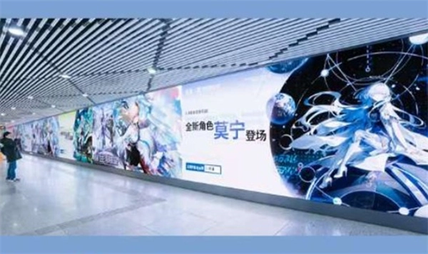 活動(dòng)地點(diǎn)在上海地鐵1號(hào)線陜西南路站的站廳層,具體位置靠近4號(hào)口。站內(nèi)設(shè)置了不少鳴潮角色主題的燈箱和地貼,玩家可以輕松找到合適的拍照打卡點(diǎn)。