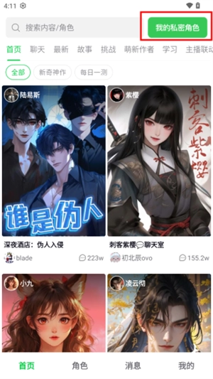 1、進入軟件,點擊右上方的“我的私密角色”。