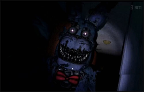 3、呼吸聲關(guān)門,噩夢邦尼走左邊,噩夢奇卡走右邊,到第56夜時會有噩夢費德熊走四邊不定,