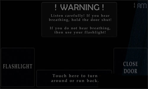 操作上本作也做了較大的改變,這一關(guān)玩家不再是通過監(jiān)視器來確認(rèn)玩具熊的動向,而是親自到門口聽聲音確認(rèn)玩具熊,因此本作小編認(rèn)為是系列作品中最為恐怖的,膽小的自己走遠(yuǎn)些,另外由于是聽聲音辨認(rèn),所以游戲?qū)τ谝粜гO(shè)備的要求還是蠻大