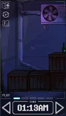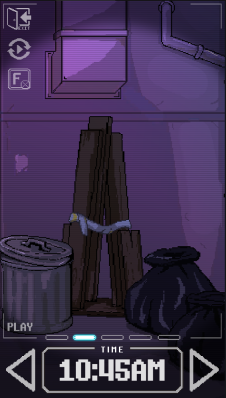 (大叔)中間時間,捉迷藏,小男孩打開垃圾桶,然后推倒梯子(捉迷藏那時間的最左邊)。