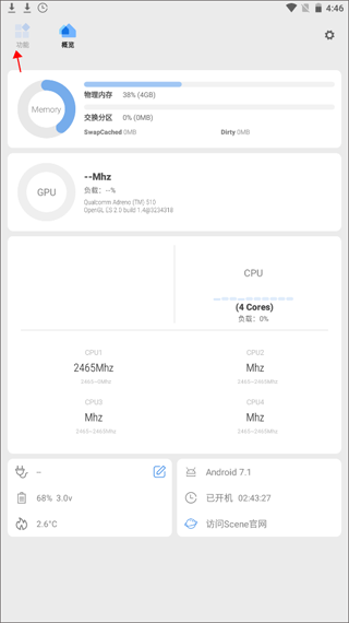 打開(kāi)Scene工具箱軟件,點(diǎn)擊圖中的“ADB模式”,在彈出的風(fēng)險(xiǎn)提示窗口中選擇同意,接下來(lái)就能進(jìn)入Scene5的主界面,看到各種軟硬件信息了。