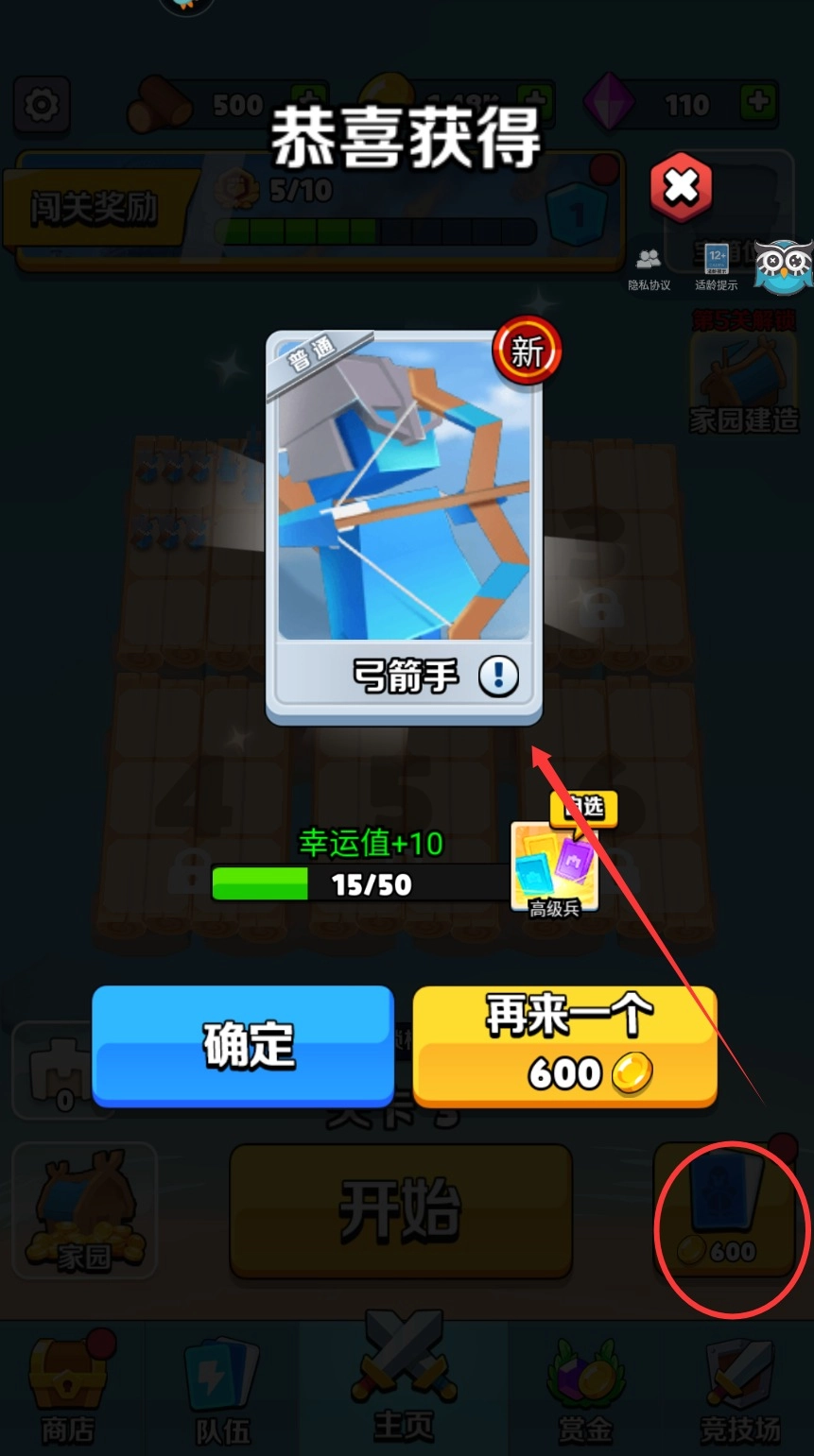 1、打開游戲右側(cè)的兵種招募界面,消耗600金幣就能隨機(jī)獲取新兵種。不同兵種有各自的戰(zhàn)斗特性,合理搭配能提升戰(zhàn)力。