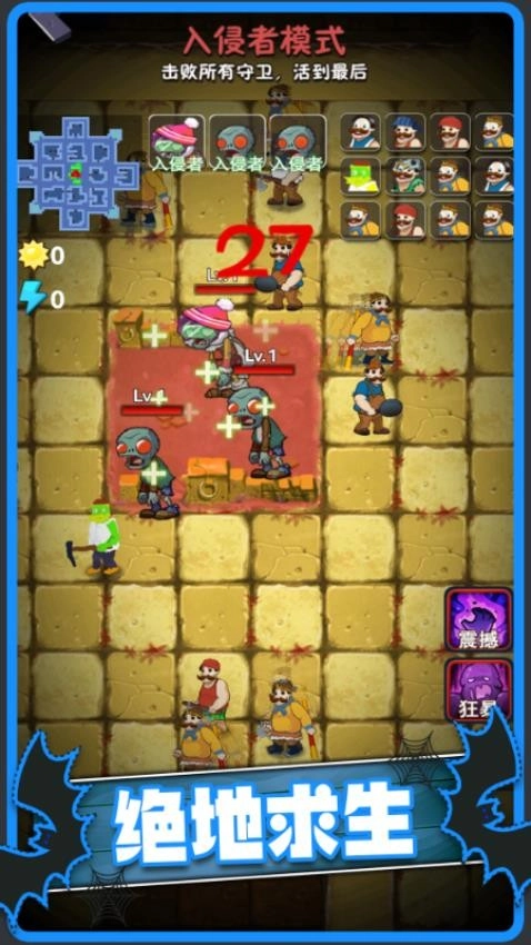 1,生存挑戰(zhàn),冒險(xiǎn)過程中需時(shí)刻關(guān)注守衛(wèi)者的存活數(shù)量,只要有一名守衛(wèi)者堅(jiān)持到最后,即可贏得勝利。