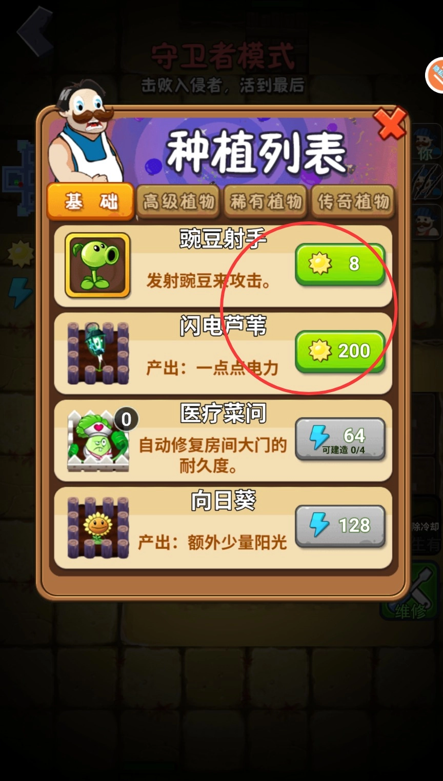 2、開局先放置向日葵提高陽光產(chǎn)量,等資源充足后再種植閃電蘆葦?shù)雀呒壷参?,注意?yōu)先升級關(guān)鍵單位。