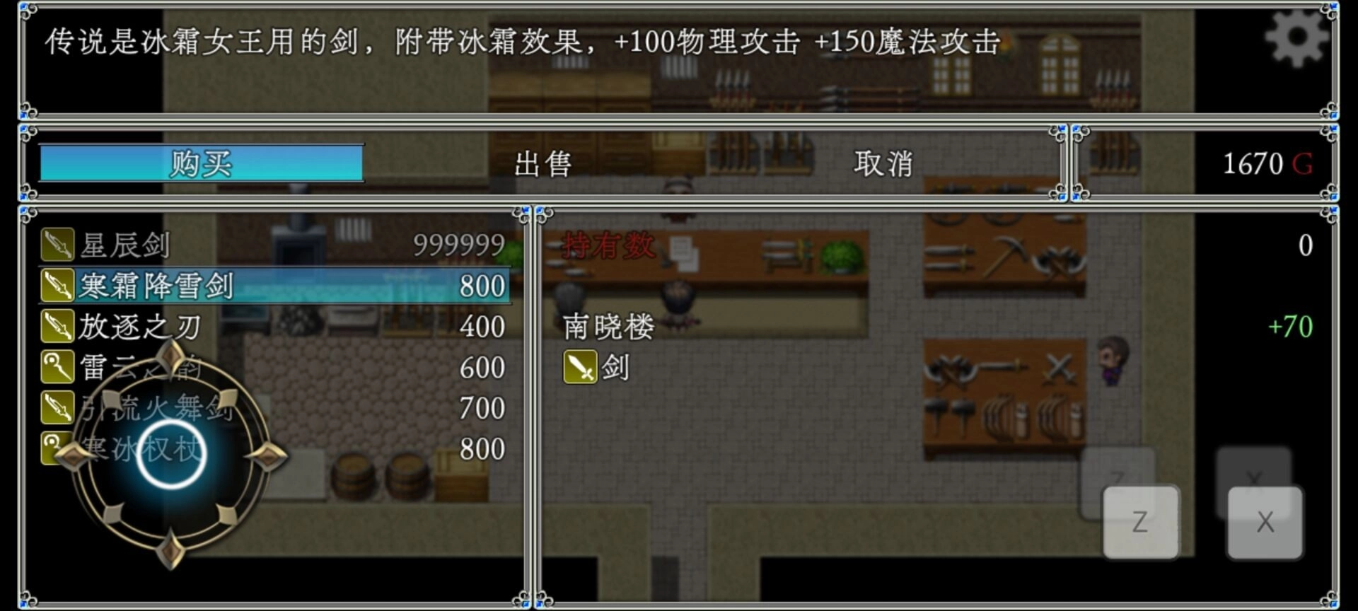 再去武器店,把拿到的藥水,驅(qū)魔藥草,帽子啥的全賣了,然后買一把劍。