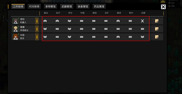 2、游戲提供多樣化的雇員角色,每個(gè)雇員都有獨(dú)特的技能和背景。玩家可以靈活分配他們的任務(wù),包括工作時(shí)長(zhǎng)、飲食計(jì)劃、武器選擇等,充分利用他們的能力為家園建設(shè)服務(wù)。