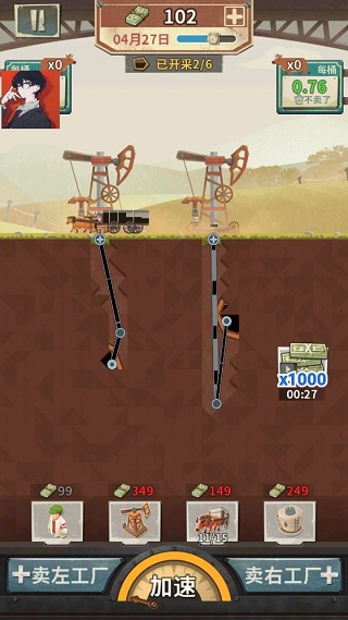 您可以使用您的收入來(lái)不斷升級(jí)您的工具和技術(shù),以改善您的石油鉆井作業(yè)。在有限的時(shí)間內(nèi),獲得更多的石油,賺更多的錢,并擴(kuò)大規(guī)模!