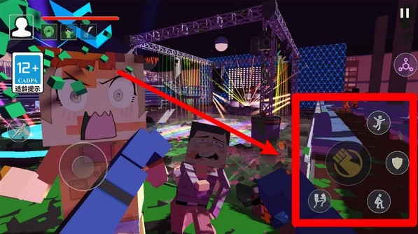 2. 右側(cè)的大按鈕是主要攻擊手段,點(diǎn)擊它就能出拳,與周邊功能鍵配合,可實(shí)現(xiàn)防御、跳躍以及做出特殊動(dòng)作。