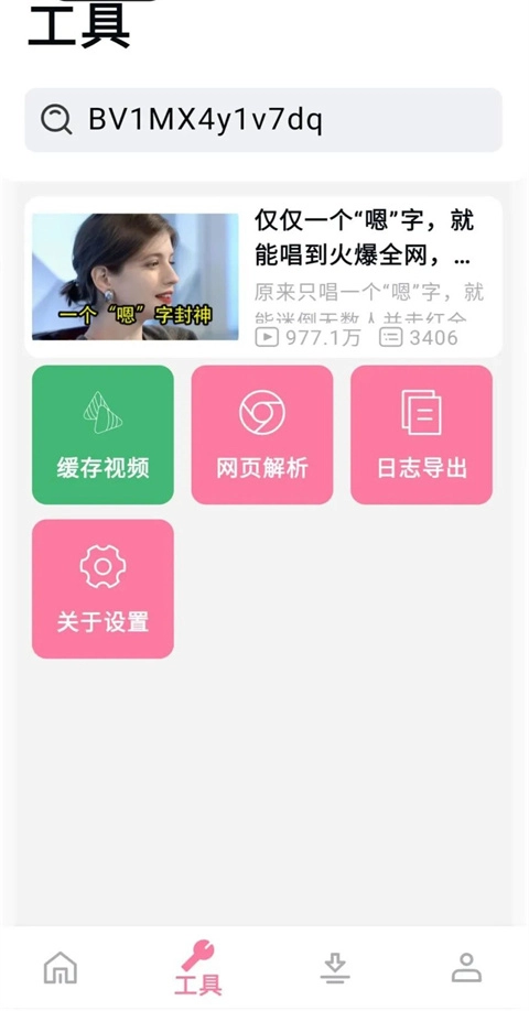 1、如果你想下載B站上的某個視頻,打開軟件的“工具”版塊,然后在頂部的搜索框中輸入BV/AV/EP號或者視頻鏈接。