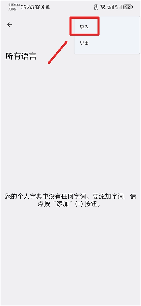 6、最后選擇導(dǎo)入并在手機文件中選擇你要帶入的詞庫文件進行導(dǎo)入即可