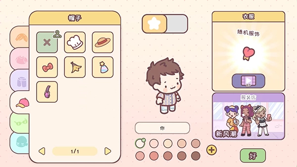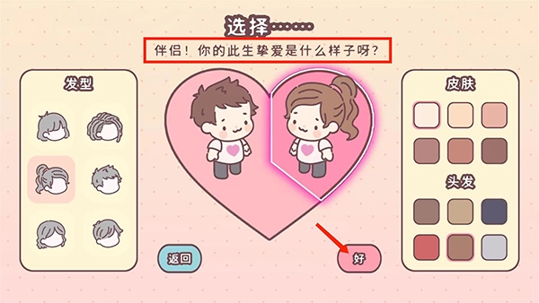 1、打開袋中愛游戲,進(jìn)入角色diy界面,選擇自己喜歡的發(fā)型、皮膚、頭發(fā)后選擇【好】選項,