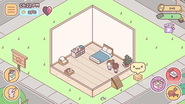 2、提供了豐富多樣的家具與裝飾選項,玩家能夠依據(jù)個人喜好,隨心所欲地對自己的小房子進(jìn)行定制,打造出更為溫馨舒適的居住空間。