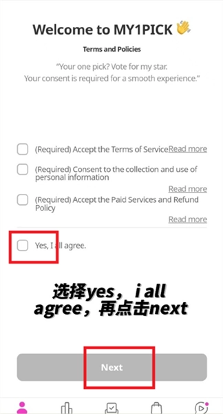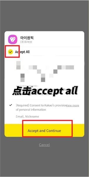 1.打開my1pick,點擊選擇一種登錄方式,這里以kakao為例