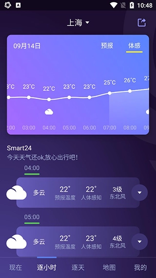 4、而且還支持逐小時(shí)查看天氣情況,未來(lái)天氣一目了然。