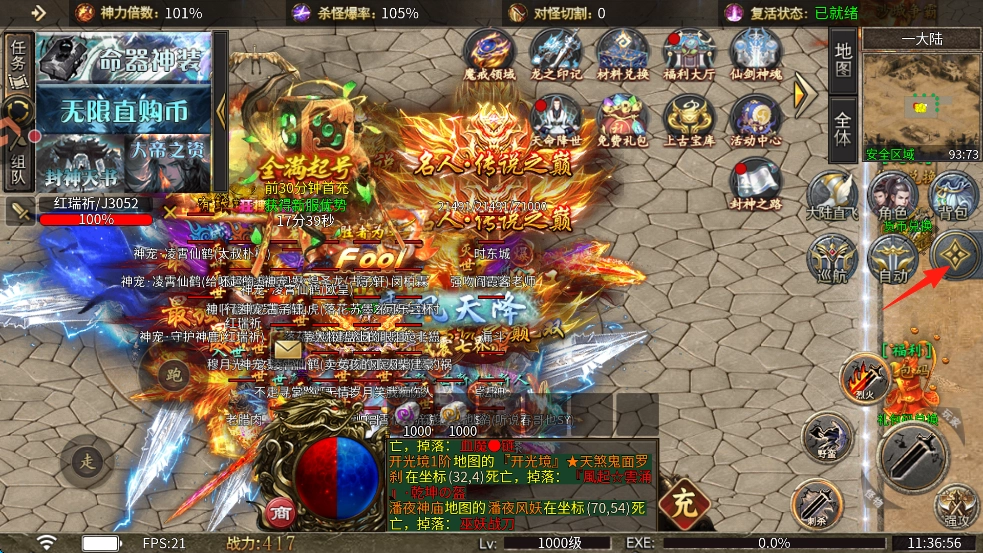 1、普通怪物有概率直接掉落頂級裝備,掉落時伴紅光柱提示,散人無需氪金實現(xiàn) “打金自由”。