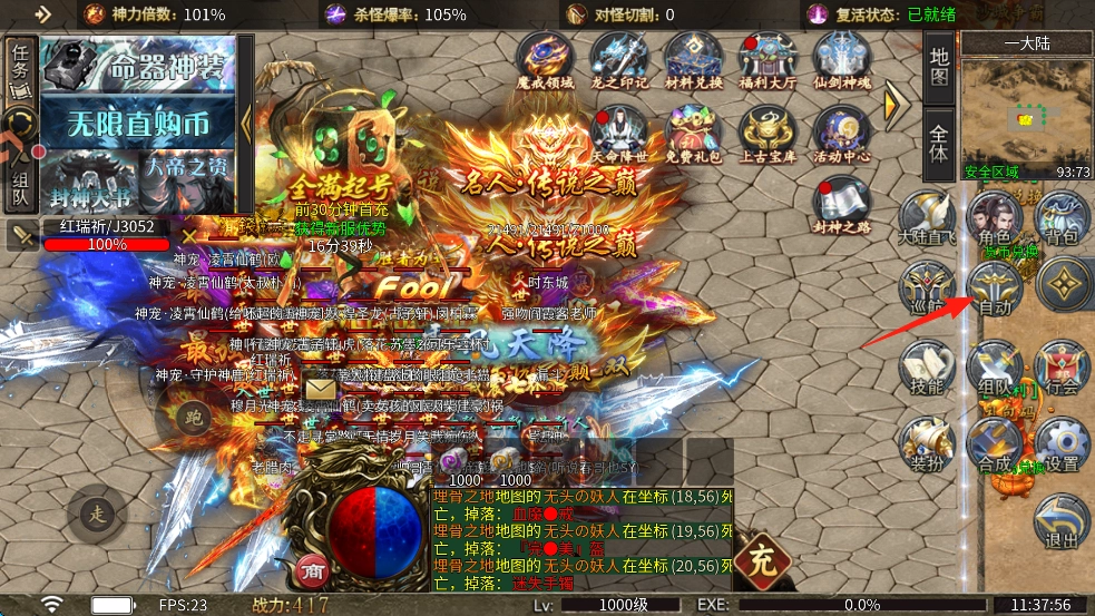 3、落地即刻啟用 “自動回收” 與 “自動拾取” 功能,冗余裝備將自動轉(zhuǎn)化為金幣與材料,全程無需手動操作。