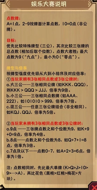 不同的牌是三張牌相加和的個(gè)位數(shù)誰(shuí)大,誰(shuí)贏。