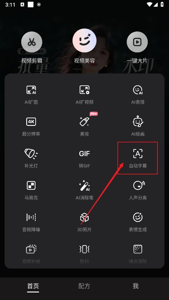 1. 在首頁點擊“自動字幕”即可進入。