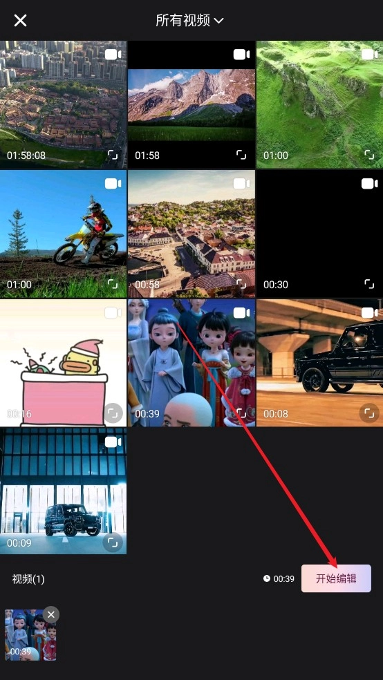 2、如圖所示,選擇所需添加的作品,點擊\"開始編輯\"。