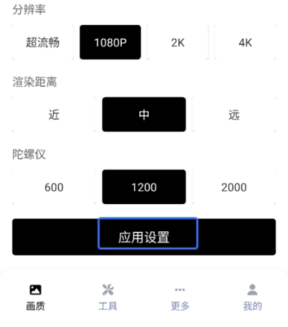 2、同時(shí)還支持修改分辨率、渲染距離、陀螺儀,設(shè)置好點(diǎn)擊應(yīng)用設(shè)置