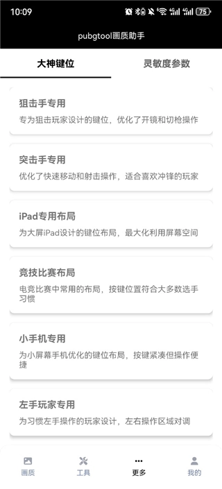 1、在其中點(diǎn)擊“更多”,接著點(diǎn)擊“大神鍵位”里的“ipad專用布局”