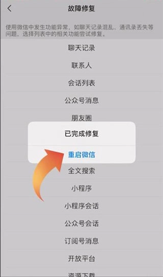 5、最后點(diǎn)擊【重啟微信】,此時打開微信就可以看到誤刪的聊天記錄了。