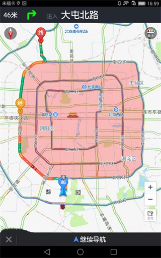 5、導(dǎo)航將依照所設(shè)置的路線進(jìn)行引導(dǎo),此即手動(dòng)設(shè)置途經(jīng)點(diǎn)并繞行限行區(qū)的完整操作流程。
