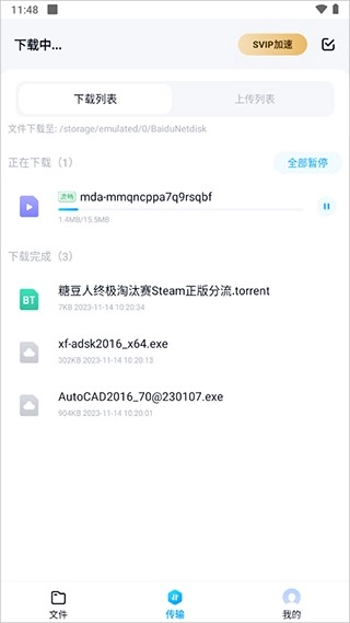 4、然后用戶就可以前往傳輸頁面中查看進度