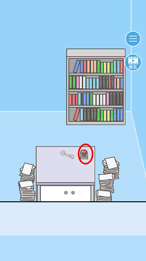 請切換至第三個場景,將堆放在角落的文件統(tǒng)統(tǒng)移開,屆時你會發(fā)現(xiàn)一把鑰匙以及一個隱藏的開關(guān)。不過需要留意的是,切勿直接使用鑰匙開門,原因在于不確定上司此刻是否正守在門外,伺機抓你個現(xiàn)行。
