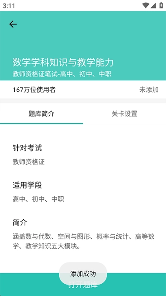 4、添加成功,返回題庫首頁查看新添加的題庫即可。