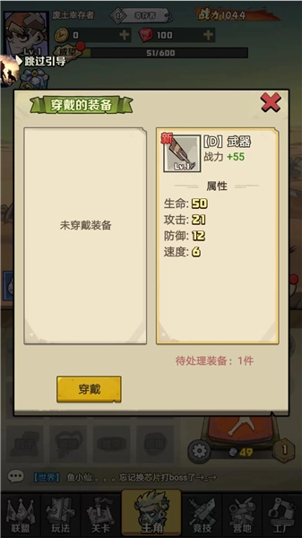 4、如圖,獲得新裝備后,我們可以進(jìn)行穿戴,