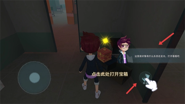 4靠近寶箱后會(huì)出現(xiàn)發(fā)光特效,點(diǎn)擊開啟寶箱即可獲取各類不同的道具或物資。