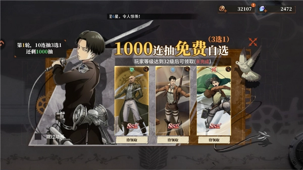 達(dá)到相應(yīng)等級(jí)后可免費(fèi)領(lǐng)取千抽角色;