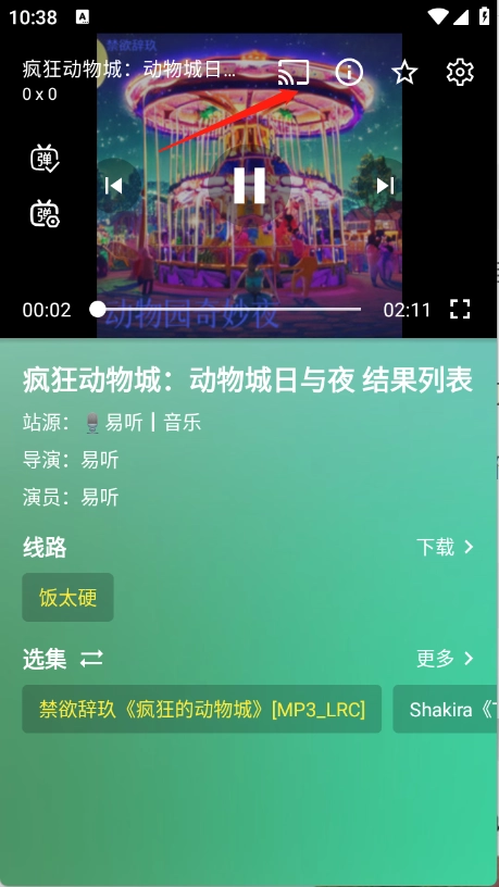 1、用戶點擊自己想看的影片進入播放頁面后,再點擊頁面右上角的投屏按鈕。