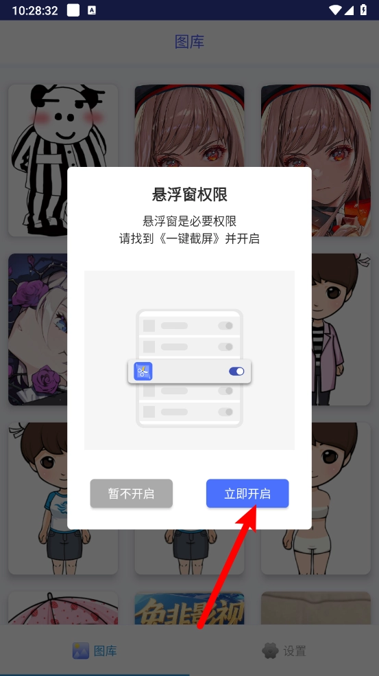 3、彈出懸浮權(quán)限,點(diǎn)擊"立即開啟"。