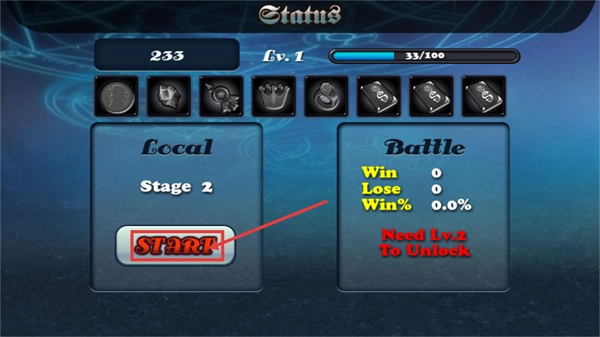 1、點(diǎn)擊【START】進(jìn)入【Stage-2】,當(dāng)前等級1,進(jìn)度33/100,開啟新關(guān)卡挑戰(zhàn)。