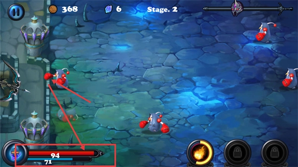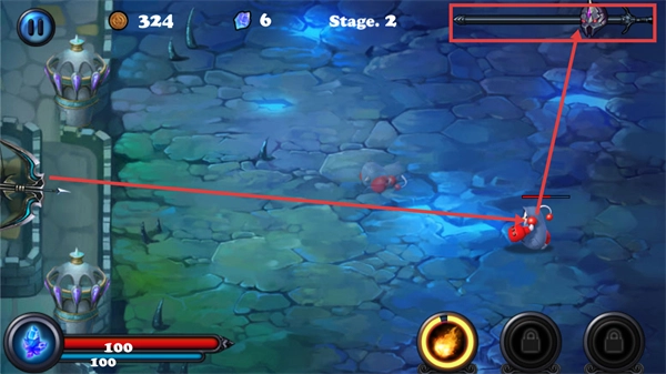 2、在【Stage-2】的戰(zhàn)斗環(huán)節(jié)中,需要操控弓箭對準(zhǔn)怪物,同時(shí)留意上方的進(jìn)度條,借助基礎(chǔ)攻擊來抵擋敵人的攻勢。