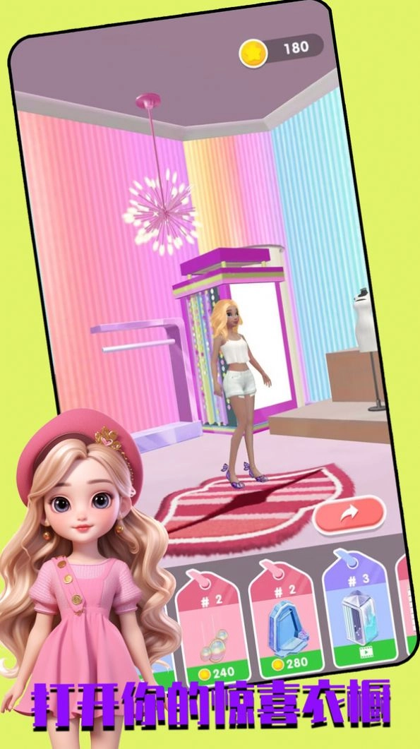1、換裝搭配:游戲里,你能依據(jù)個(gè)人喜好和不同場(chǎng)合挑選各類服裝與配飾,進(jìn)行搭配組合。借助多樣的搭配嘗試,塑造出風(fēng)格各異的時(shí)尚造型,還能把你的時(shí)尚靈感分享給其他玩家。