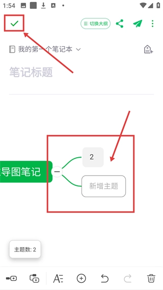 4、完成主題添加后,點(diǎn)擊左上角的對(duì)勾按鈕,即可保存當(dāng)前思維導(dǎo)圖的編輯內(nèi)容,結(jié)束創(chuàng)作流程。
