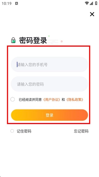 3、進(jìn)入密碼登錄界面后,填寫相關(guān)信息并勾選協(xié)議,隨后點(diǎn)擊登錄按鈕,就能完成賬號登錄操作。
