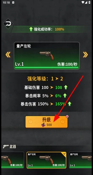 3、對(duì)武器進(jìn)行升級(jí),比如量產(chǎn)左輪這類武器,通過升級(jí)來提高其傷害與暴擊屬性,以此增強(qiáng)戰(zhàn)斗能力,從而更好地幫助擊敗怪物。