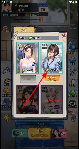 4、能夠回家招募并升級(jí)秘書,以此提高每秒賺取的收益,獲取更多資源,讓游戲的養(yǎng)成和經(jīng)營(yíng)玩法更加豐富。