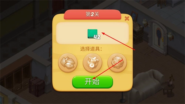 1進(jìn)入游戲后,先挑選關(guān)卡,明確要達(dá)成的目標(biāo),再點(diǎn)擊開始按鈕進(jìn)入消除關(guān)卡。