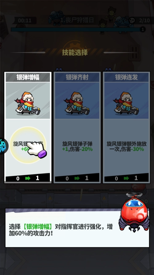 4、隨著游戲進(jìn)展,會(huì)時(shí)不時(shí)跳出新的技能選擇,選擇好的技能對于后期殺敵人事半功倍,大家要慎重選擇。