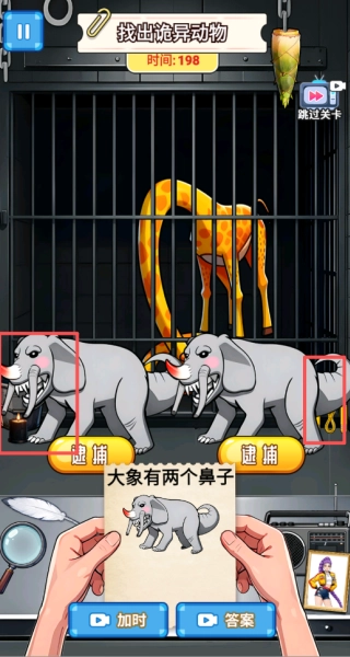 1、點擊動物時精準(zhǔn)點擊異常部位,如異色毛發(fā)、多余肢體等,觸發(fā)逮捕提示,減少無效點擊。