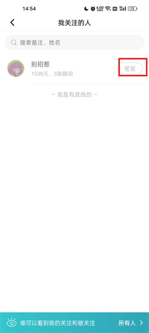 3、當(dāng)雙方互相關(guān)注時(shí),會(huì)自動(dòng)建立密友關(guān)系;若任意一方取消關(guān)注,密友身份隨即解除。