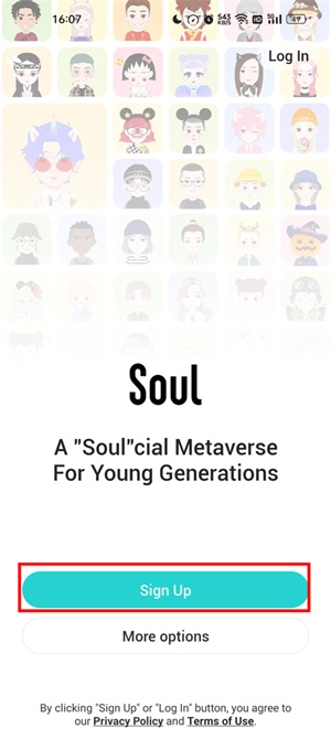 1、首先,請(qǐng)安裝Soul國(guó)際版,打開(kāi)后點(diǎn)擊sign up,使用郵箱完成注冊(cè)登錄流程;