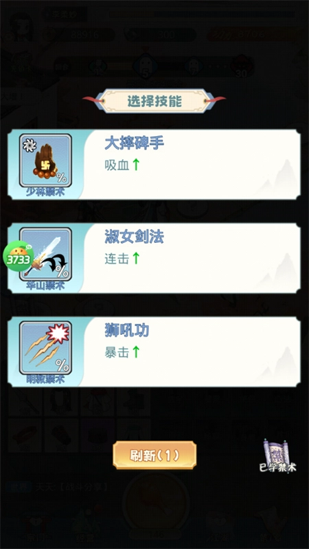 獲得秘籍時,應(yīng)優(yōu)先選取陣法類。若湊齊兩個特定陣法,效果為每擊敗一個小怪可永久提升1%基礎(chǔ)攻擊力。該效果疊加越早收益越高,值得反復(fù)嘗試以在開局獲取。此外,需注重生命值的積累,保證足夠的生存能力,否則容易在后期被高傷害敵人瞬間擊敗。